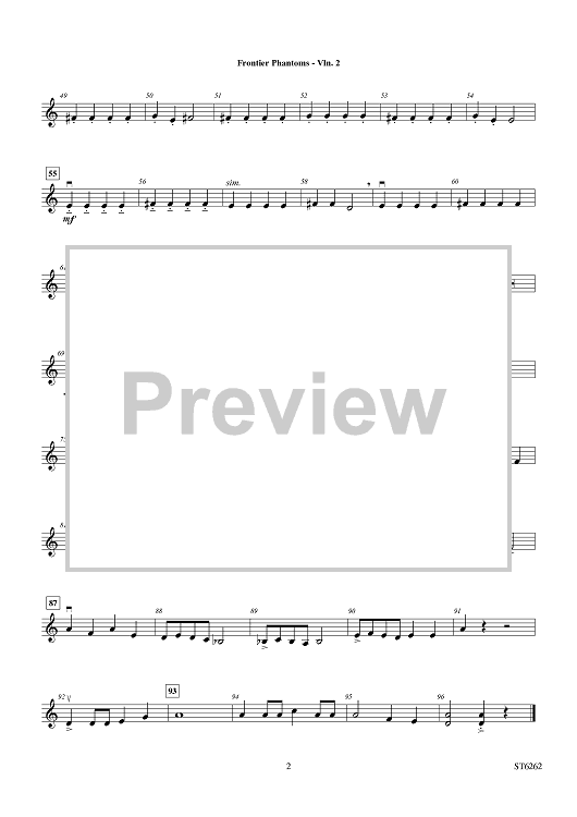 Digital Sheet Music for Frontier Phantoms - Violin 2 by Deborah Baker Monday scored for String Orchestra; id:421803