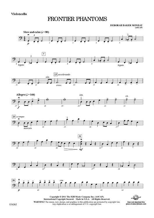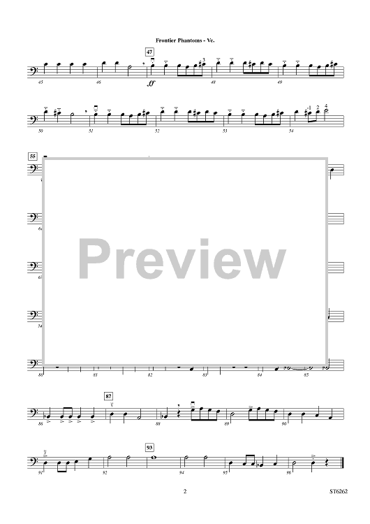 Digital Sheet Music for Frontier Phantoms - Violoncello by Deborah Baker Monday scored for String Orchestra; id:421806