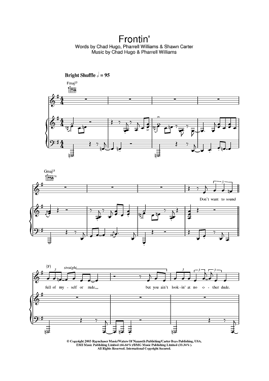 Digital Sheet Music for Frontin' by Jamie Cullum scored for Piano/Vocal/Chords; id:379374
