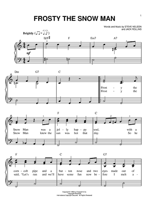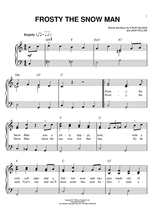 Digital Sheet Music for Frosty The Snow Man by Steve Nelson, Jack Rollins scored for Easy Piano; id:383601
