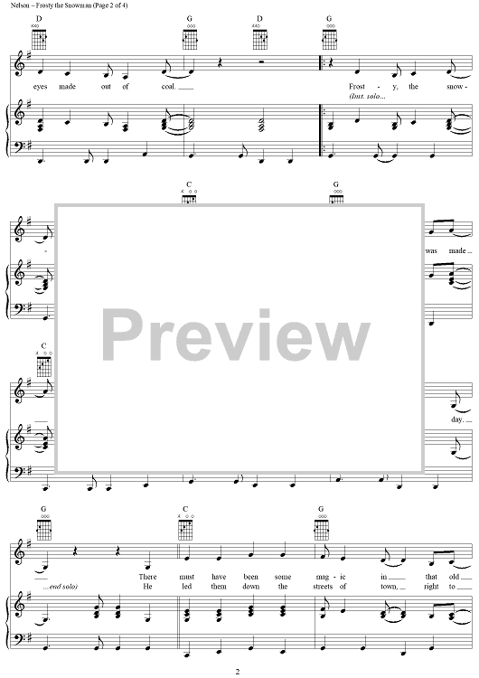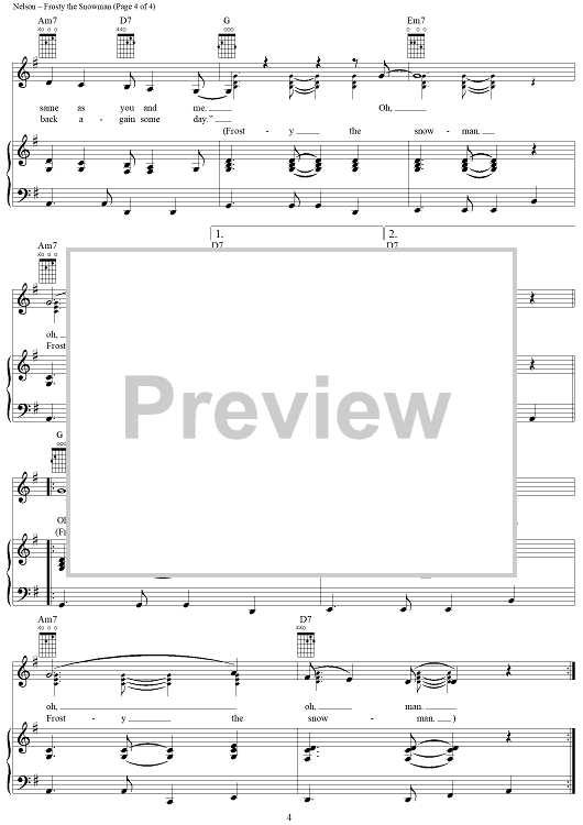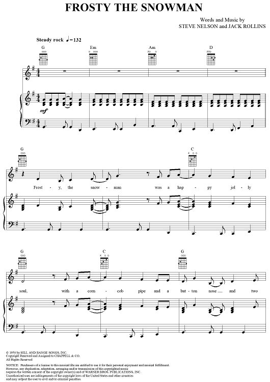 Digital Sheet Music for Frosty the Snowman by Steve Nelson, Jack Rollins, The Ronettes scored for Piano/Vocal/Chords; id:304315