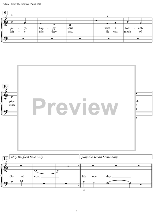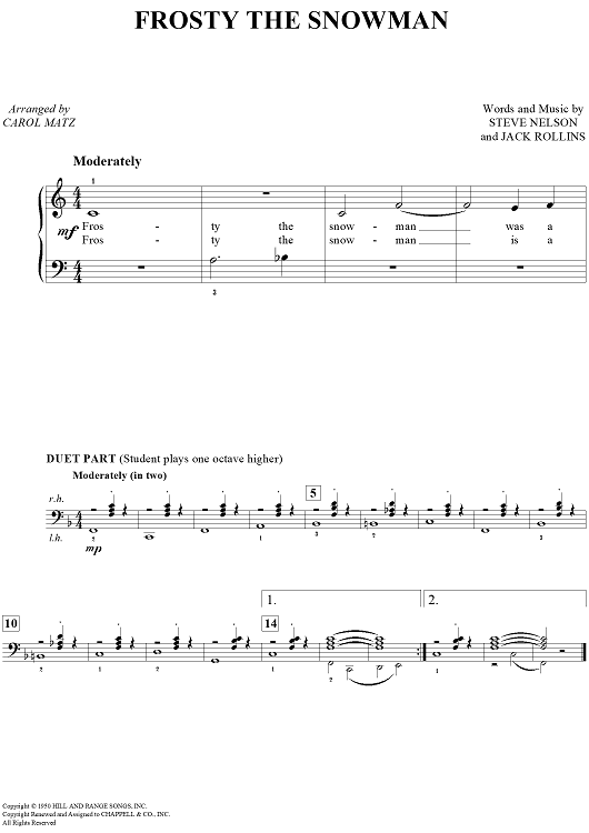 Digital Sheet Music for Frosty The Snowman by Steve Nelson, Jack Rollins, Carol Matz scored for Piano; id:453387