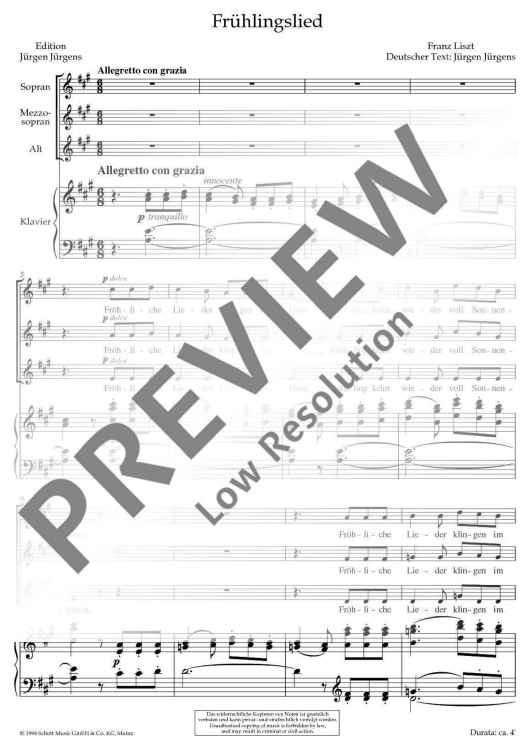 Digital Sheet Music for Fruhlingslied - Score by Franz Liszt scored for Female Choir (smeza) And Piano; id:481048