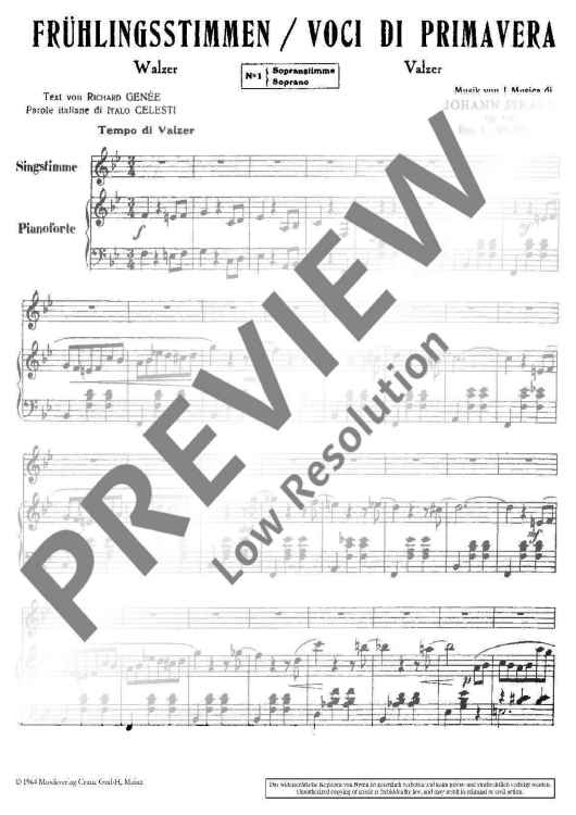 Digital Sheet Music for Frühlingsstimmen-Walzer by Johann Strauß (Son) scored for Coloratura Soprano And Piano; id:472137