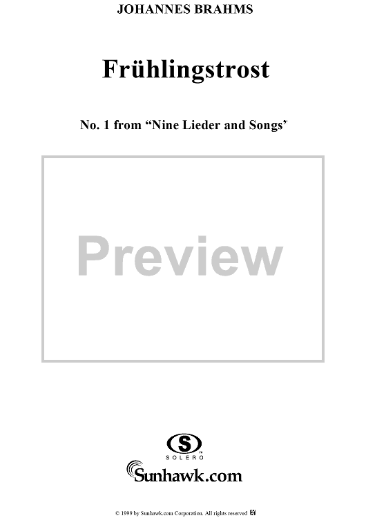 "Frühlingstrost - No. 1 from "Nine Lieder and Songs" Op. 63" Sheet Music by Johannes Brahms