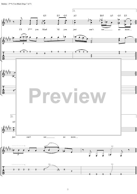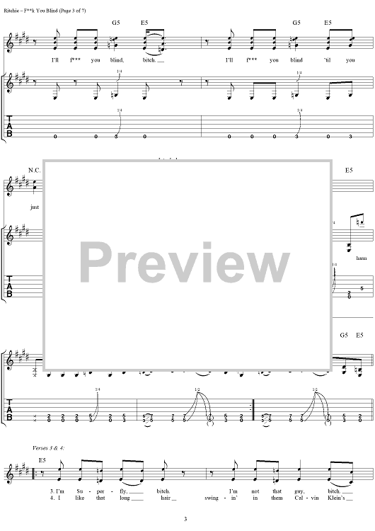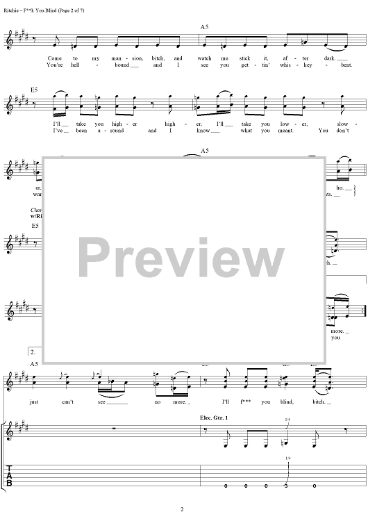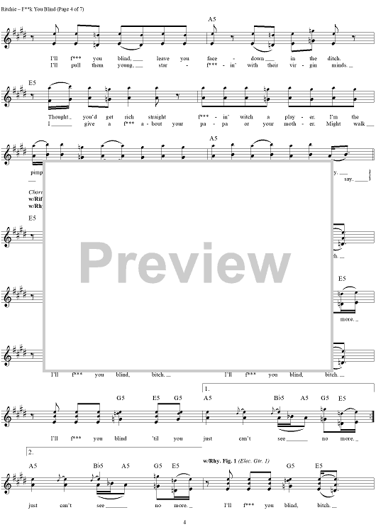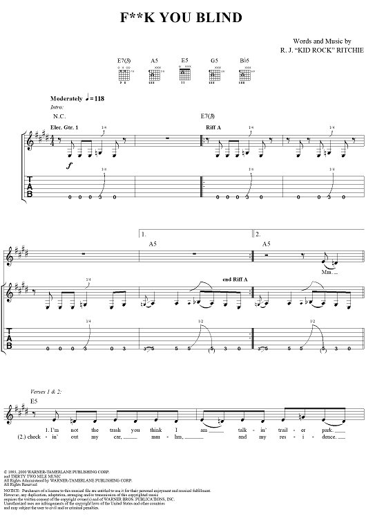 "Fuck You Blind" Sheet Music by Kid Rock