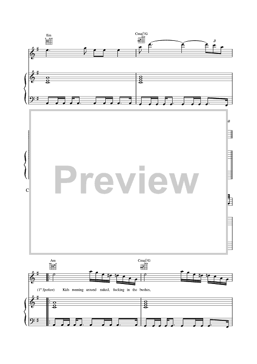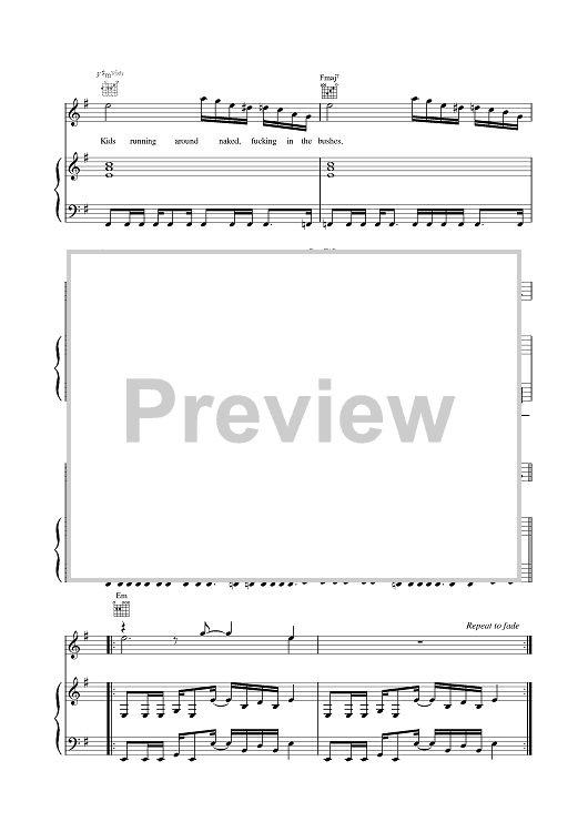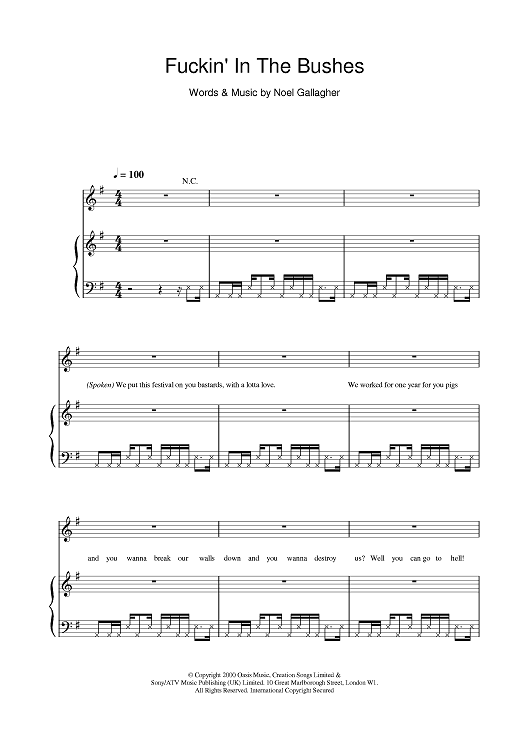Digital Sheet Music for Fuckin' In The Bushes by Noel Gallagher, Oasis scored for Piano/Vocal/Chords; id:379977