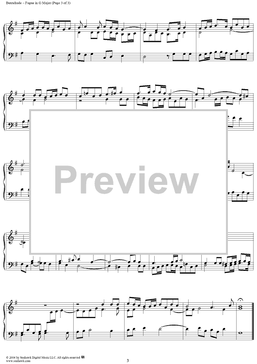 Digital Sheet Music for Fuga in G Major by Dietrich Buxtehude scored for Organ Solo; id:302918