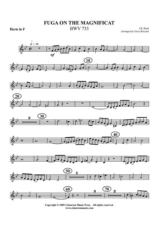 "Fuga on the Magnificat, BWV 733 - Horn in F" Sheet Music by Johann Sebastian Bach