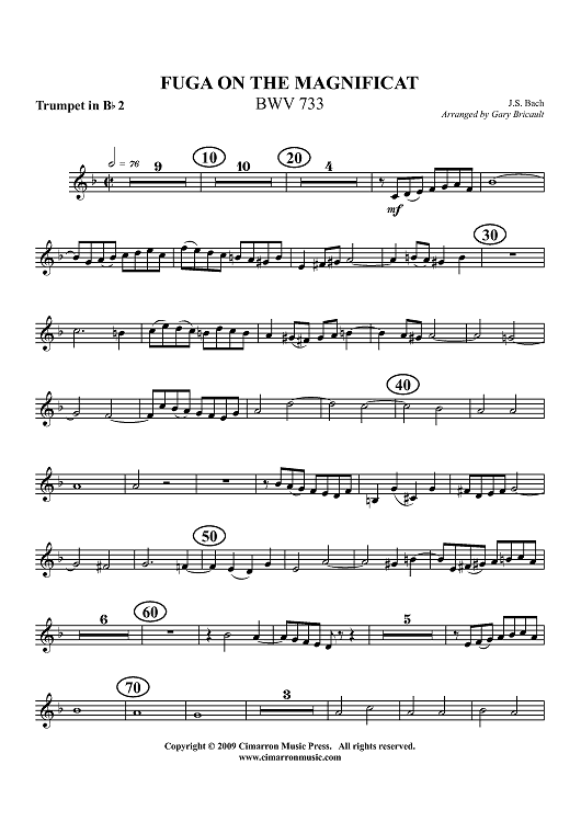 Digital Sheet Music for Fuga on the Magnificat, BWV 733 - Trumpet 2 in Bb by Johann Sebastian Bach, Gary Bricault scored for Brass Quintet; id:416303
