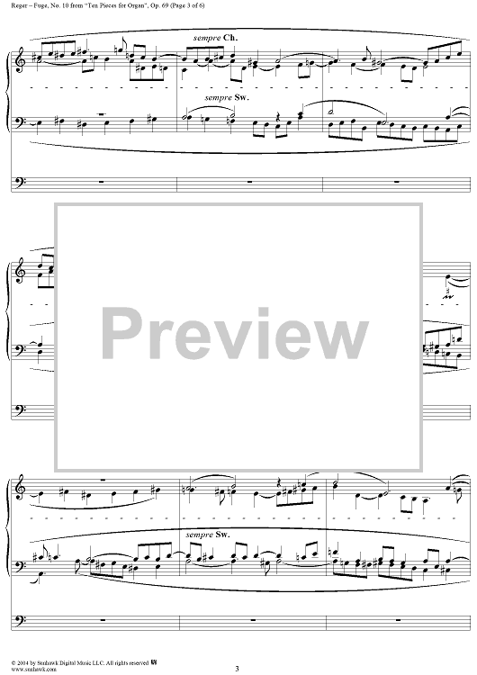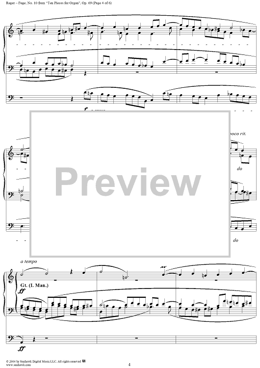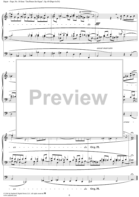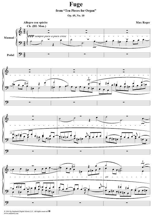 Digital Sheet Music for Fuge, No. 10 from "Ten Pieces for Organ", Op. 69 by Max Reger scored for Organ Solo; id:297891