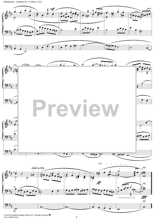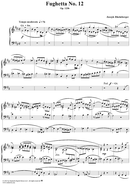 Digital Sheet Music for Fughetta No. 12 from "Twelve Fughettas", Op. 123b by Joseph Rheinberger scored for Organ Solo; id:303206