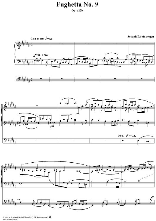 Digital Sheet Music for Fughetta No. 9 from "Twelve Fughettas", Op. 123b by Joseph Rheinberger scored for Organ Solo; id:303209