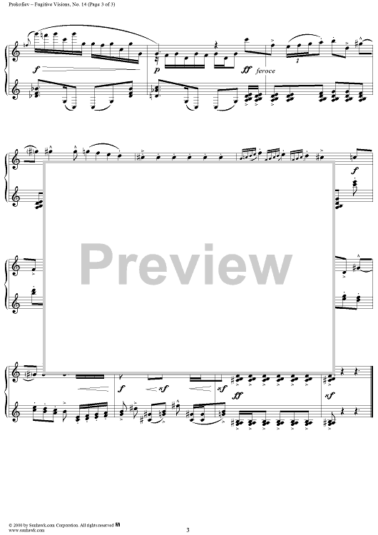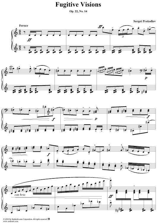 Digital Sheet Music for Fugitive Visions, op. 22, no. 14 (Feroce) by Sergei Prokofiev scored for Piano Solo; id:235304