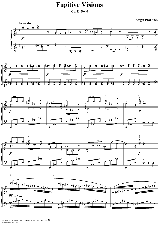 "Fugitive Visions, op. 22, no. 4 (Animato)" Sheet Music by Sergei Prokofiev