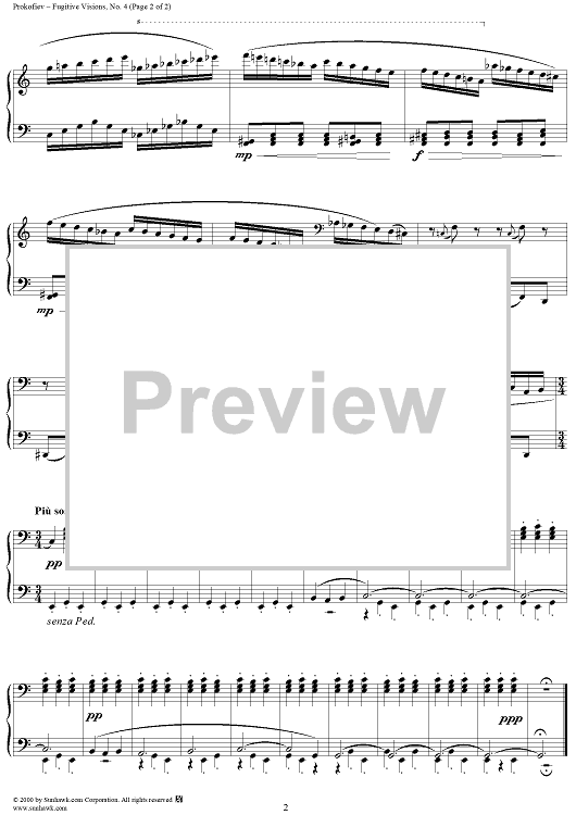 Digital Sheet Music for Fugitive Visions, op. 22, no. 4 (Animato) by Sergei Prokofiev scored for Piano Solo; id:235295