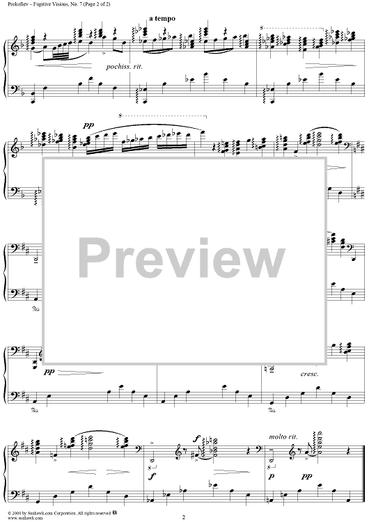 Digital Sheet Music for Fugitive Visions, op. 22, no. 7 (Harp) by Sergei Prokofiev scored for Piano Solo; id:235299