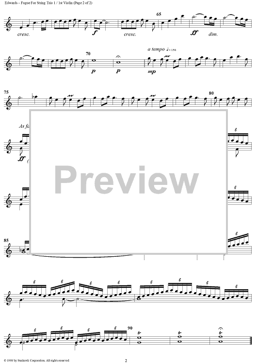 Digital Sheet Music for Fugue for String Trio 1 - Violin 1 by Gary A. Edwards scored for Two Violins/Cello; id:108938