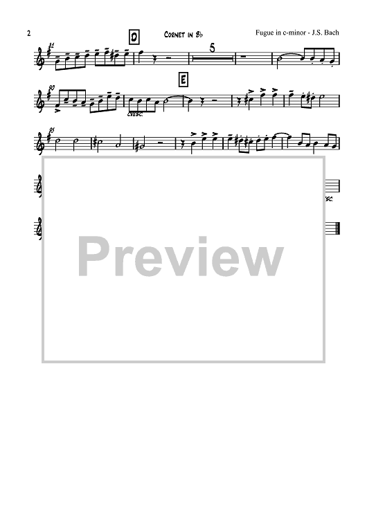 "Fugue in c flat-minor - Cornet in Bb" Sheet Music by Johann Sebastian Bach
