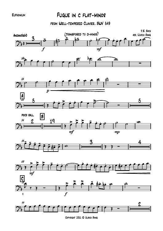 Digital Sheet Music for Fugue in c flat-minor - Euphonium by , Johann Sebastian Bach, Ulrich Bang scored for Brass Ensemble; id:419901