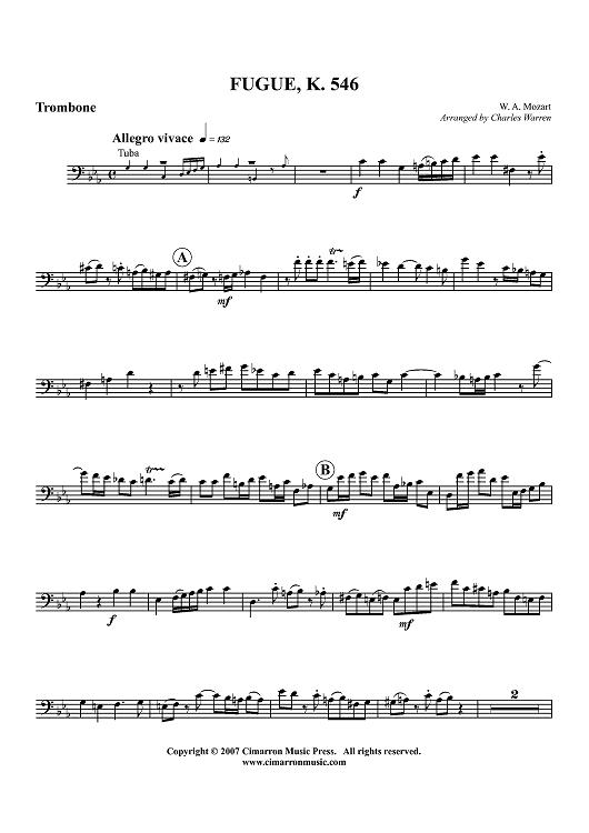 "Fugue in C Min, K. 546 - Trombone" Sheet Music by Wolfgang Amadeus Mozart