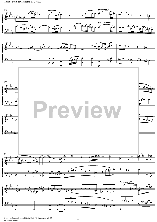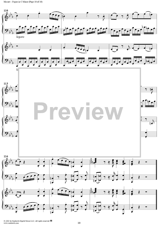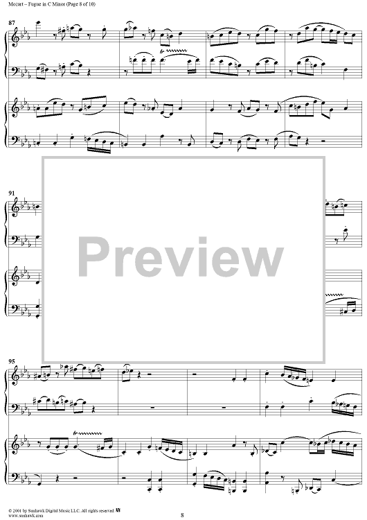 Digital Sheet Music for Fugue in C Minor, K426 by Wolfgang Amadeus Mozart scored for 2 Pianos, 4 Hands; id:242007
