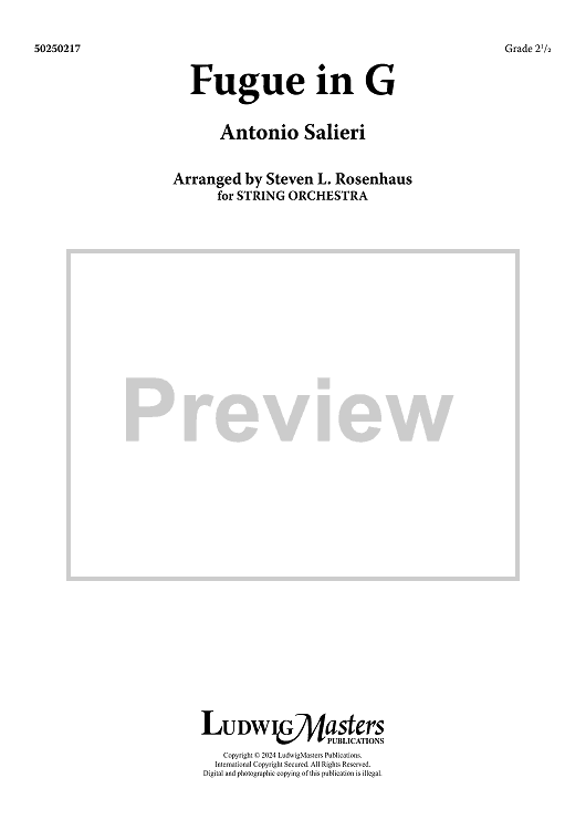 Digital Sheet Music for Fugue in G - Full Score by Antonio Salieri, Steven L. Rosenhaus scored for Orchestra; id:503888