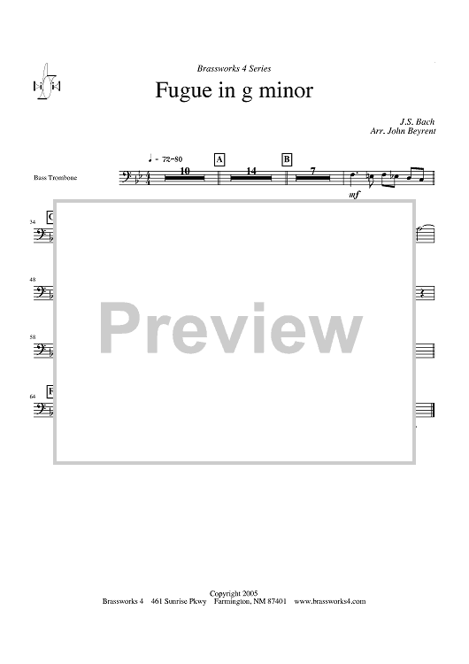 Digital Sheet Music for Fugue in g minor - Bass Trombone by John Beyrent, Johann Sebastian Bach scored for Brass Ensemble; id:428364