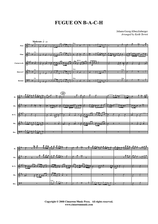 Digital Sheet Music for Fugue on B-A-C-H - Score by , Johann Georg Albrechtsberger, Keith Terrett scored for Woodwind Quintet; id:416252