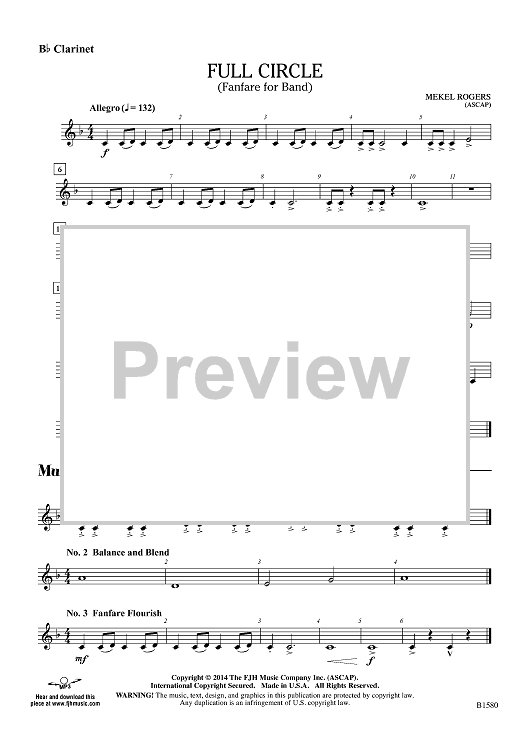 "Full Circle (Fanfare for Band) - Bb Clarinet" Sheet Music by Mekel Rogers