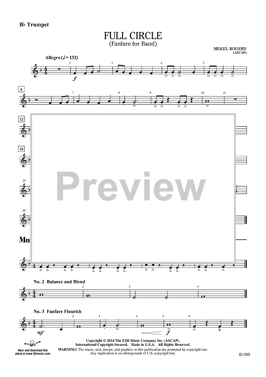 "Full Circle (Fanfare for Band) - Bb Trumpet" Sheet Music by Mekel Rogers