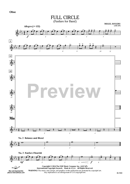 "Full Circle (Fanfare for Band) - Oboe" Sheet Music by Mekel Rogers