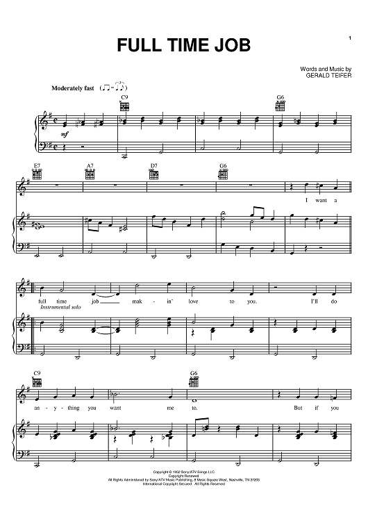 Digital Sheet Music for Full Time Job by Eddy Arnold, Gerald Teifer scored for Piano/Vocal/Chords; id:388249