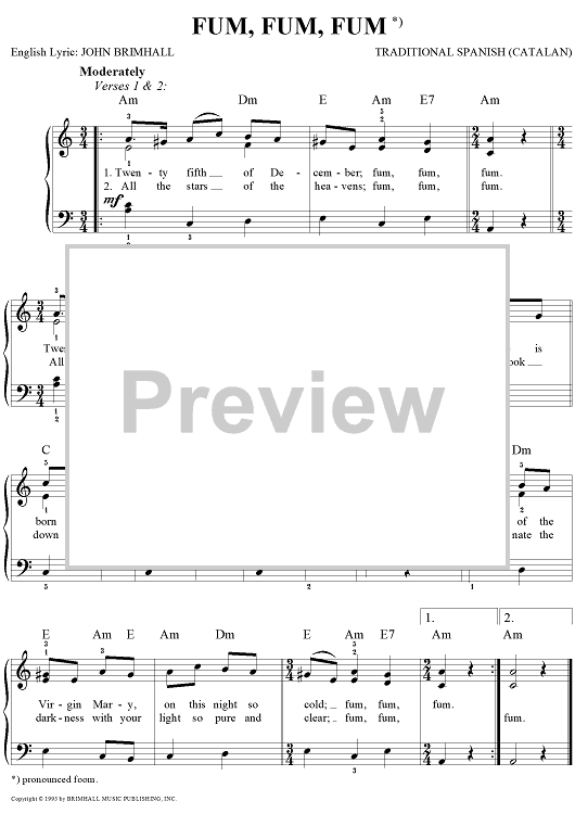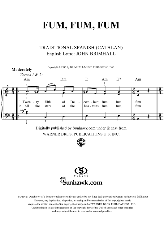 Digital Sheet Music for Fum, Fum, Fum by John Brimhall, Traditional scored for Easy Piano/Vocal; id:260954