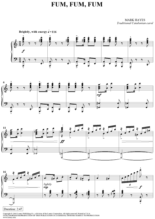 Digital Sheet Music for Fum, Fum, Fum by Mark Hayes, Traditional Carols scored for Piano Solo; id:444508