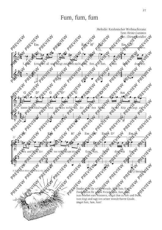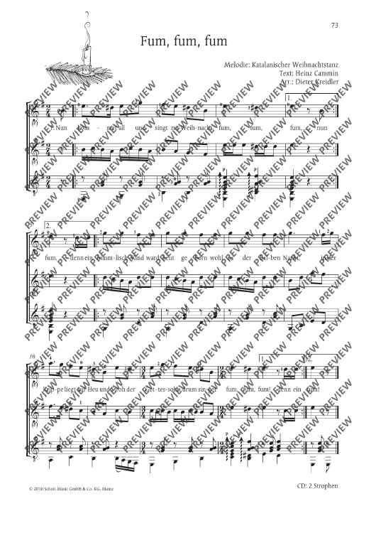 Digital Sheet Music for Fum, Fum, Fum by Dieter Kreidler scored for 1-3 Guitars (melody Instruments In C Ad Lib.); id:481756