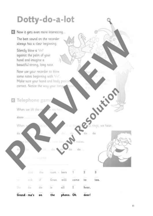 A special method for beginners. First published by Schott in German in 1990. The translation and adaption into English has been made by Peter Bowman. Three volumes for the descant recorder which advance in small steps and include many playful elements suitable for both group and individual lessons. • Discover the adventure of learning the recorder • Make real progress through games: breathing • A mixture of lively new and traditional tunes • Three supplementary tune books each with a sheet of stickers • Teacher's commentary • Join Dotty-do-a-lot and her friends in the exciting world of music "Fun and Games with the Recorder" is a comprehensive recorder tutor covering all stages from the first notes of the beginner up to the point of professional instruction for budding performers. Although the recorder is often the instrument with which children will make their first musical discoveries, it is also an instrument of the highest artistic merit. This series of books tries to link these two extremes, providing a carefully planned pathway between first, playful contact with the instrument and professional recorder playing. The three Tutor Books are suitable for use both with small groups and for individual tuition. Progress is methodical and is made in small steps placing great value on consistent work with breathing, sound production and the development of rhythmic security. In the Tutor books we speak directly to the child and provide carefully planned, precisely formulated exercises. We recognise that some children learning the recorder will not yet be able to read, but hope that this will provide an opportunity for a parent or teacher to become involved in the learning process. Each step in this process should be fun and accessible to both the parent/teacher and the child. Tutor Book 1 is intended for children from about six years of age. Previous musical experience is not essential but undoubtedly would prove useful. It concentrates on the notes B, A, G, E1, C2 and