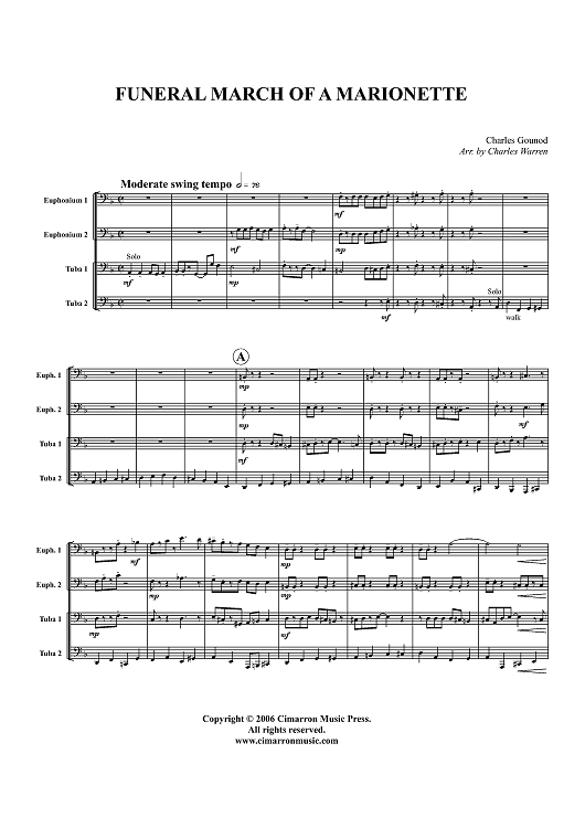 Digital Sheet Music for Funeral March of a Marionette - Score by Charles Gounod, Charles Warren scored for Tuba Quartet; id:356313