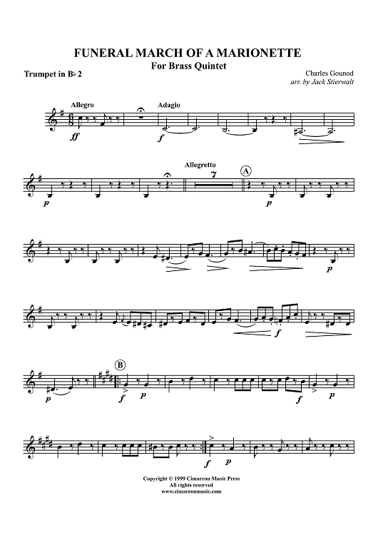 Digital Sheet Music for Funeral March of a Marionette - Trumpet 2 in B-flat by Charles Gounod, Jack Stierwalt scored for Brass Quintet; id:357582