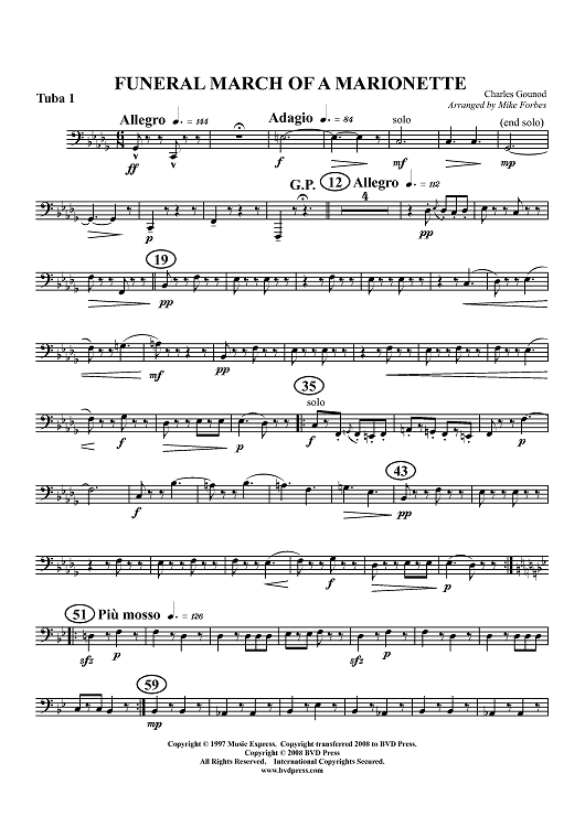 "Funeral March of a Marionette - Tuba 1" Sheet Music by Charles Gounod