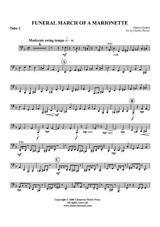 "Funeral March of a Marionette - Tuba 2" Sheet Music by Charles Gounod