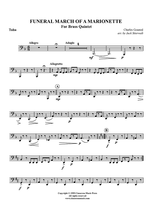 Digital Sheet Music for Funeral March of a Marionette - Tuba by Charles Gounod, Jack Stierwalt scored for Brass Quintet; id:357585