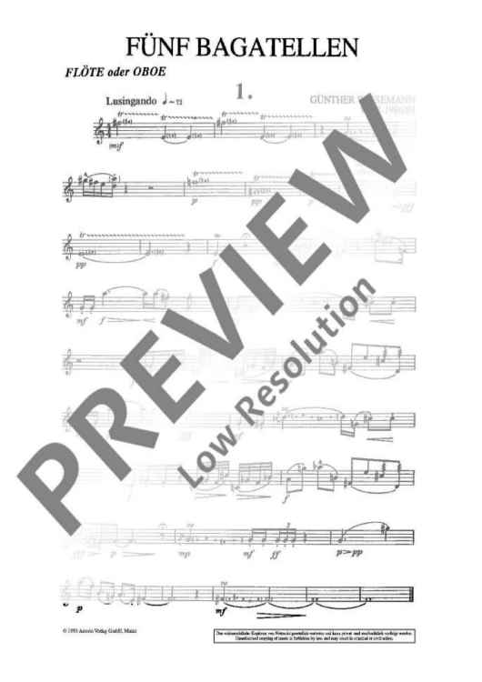 Digital Sheet Music for Fünf Bagatellen by Guenther Wiesemann scored for Flute (oboe); id:496022