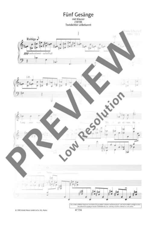 Digital Sheet Music for Fünf Gesänge mit Klavier by Erwin Schulhoff scored for Voice And Piano; id:486309