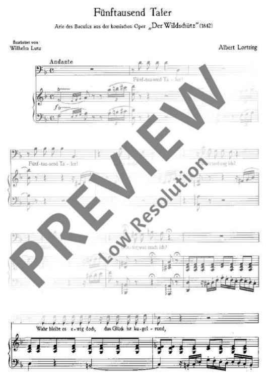 Digital Sheet Music for Fünftausend Taler by Albert Lortzing, Wilhelm Lutz scored for Bass And Piano; id:482299