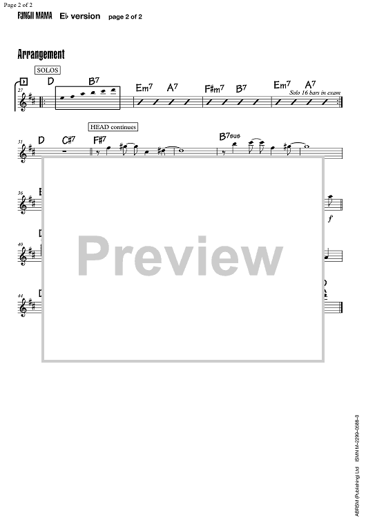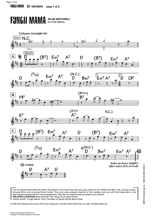Digital Sheet Music for Fungii Mama by , Blue Mitchell, Huw Warren scored for E-flat Lead Sheet; id:355550