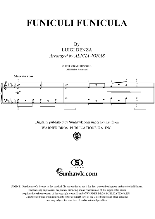 Digital Sheet Music for Funiculi Funicula by Alicia Jonas, Luigi Denza scored for Piano Solo; id:271354
