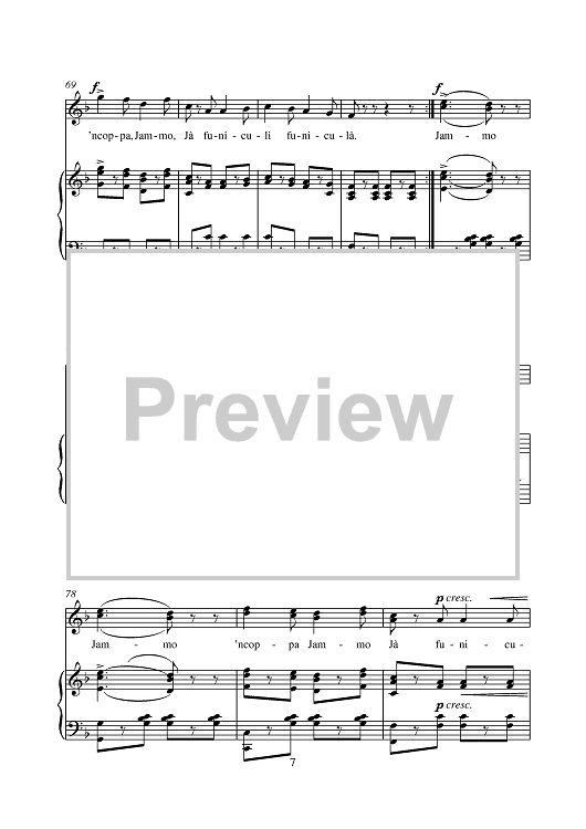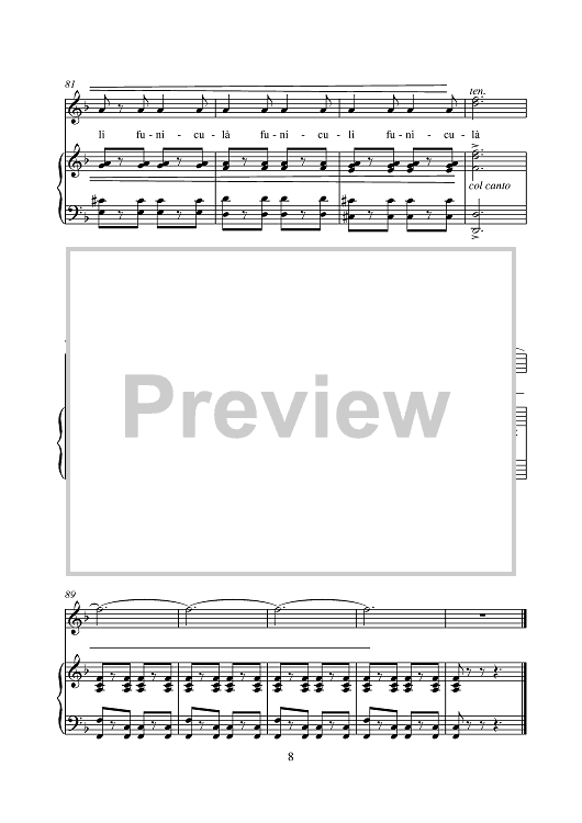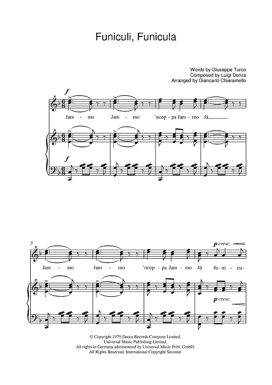 Digital Sheet Music for Funiculi, Funicula by Luciano Pavarotti, Giancarlo Chiaramello, Luigi Denza, Giuseppe Turco scored for Piano/Vocal/Chords; id:402202