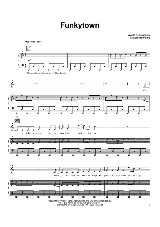 Digital Sheet Music for Funkytown by Steven Greenberg, Lipps Inc scored for Piano/Vocal/Chords; id:379422
