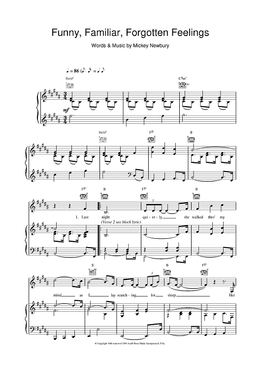 Digital Sheet Music for Funny Familiar Forgotten Feelings by Tom Jones, Mickey Newbury scored for Piano/Vocal/Chords; id:379641